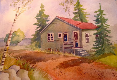 This is a "sketch". About 10 x 12 on Arches 140# cold press. Not finished..I am now putting in the road.